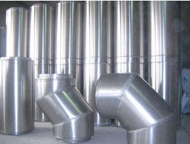 本产品为分体组合式结构,可按设计及施工要求,制作成任意走向,双层不锈钢烟囱每个部件的内、外筒及隔热材料出厂前组装为一体,现场安装时,只需拧紧螺钉即可,无须现场焊接、铆接,使安装方便、快捷。同时具备以下特点: 耐高温:可以根据一般锅炉烟气温度<240 度,也可以根据柴油发电机组480℃ -680℃的高温,双层不锈钢烟囱分别设置高压矿棉、硅酸铝等各种不同性质、不同厚度的隔热材料,确保烟囱外壁不超过45 度(热工规范要求<60 度)。